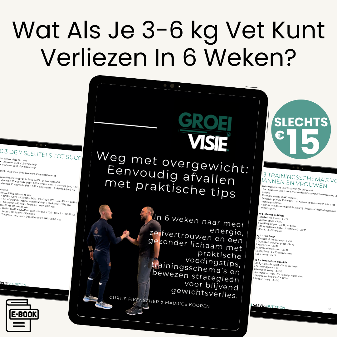 Voor een eenmalig bedrag van slechts €15 krijg je een duidelijk en effectief stappenplan waarmee je binnen 6 weken 3 tot 6 kilo vet kunt verliezen én belangrijker nog op een verantwoorde en duurzame verder kunt gaan.
